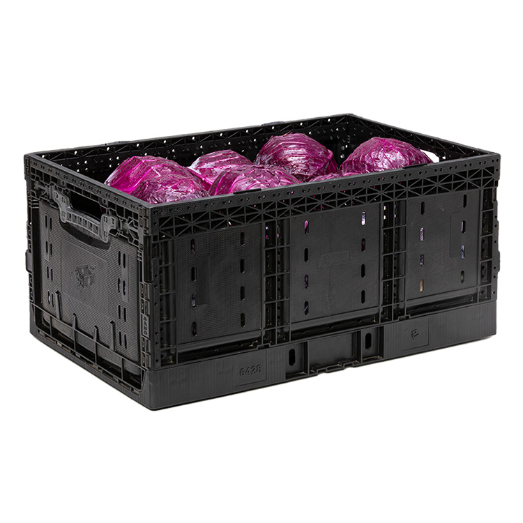 Increase your supply chain efficiency with this lightweight, reusable plastic crate. Its panels fold easily, without applying pressure, and the active lock feature secures the RPC once it is erected. Durable construction protects vegetables, while the foldable, stackable design saves valuable space in trucks and back rooms. Supports cross-stacking.