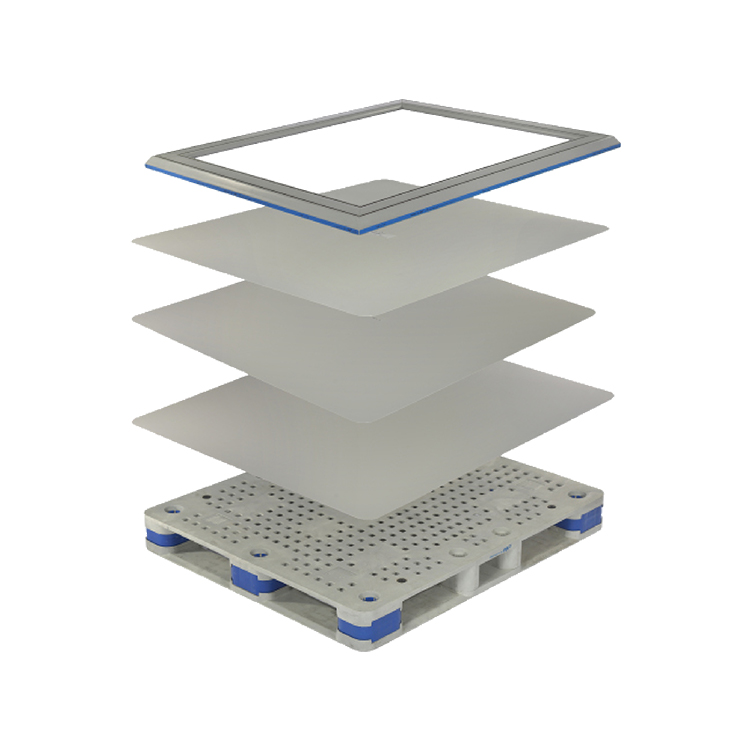 Our foodgrade PVC sustainable top frame layer solutions reduce packaging waste significantly by eliminating wood and carton disposal. With our top frame you are able to secure and protect sensitive product from damage. These top frames, available in 3 sizes and are used in the beverage can industry.