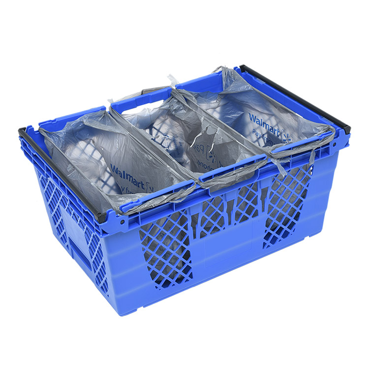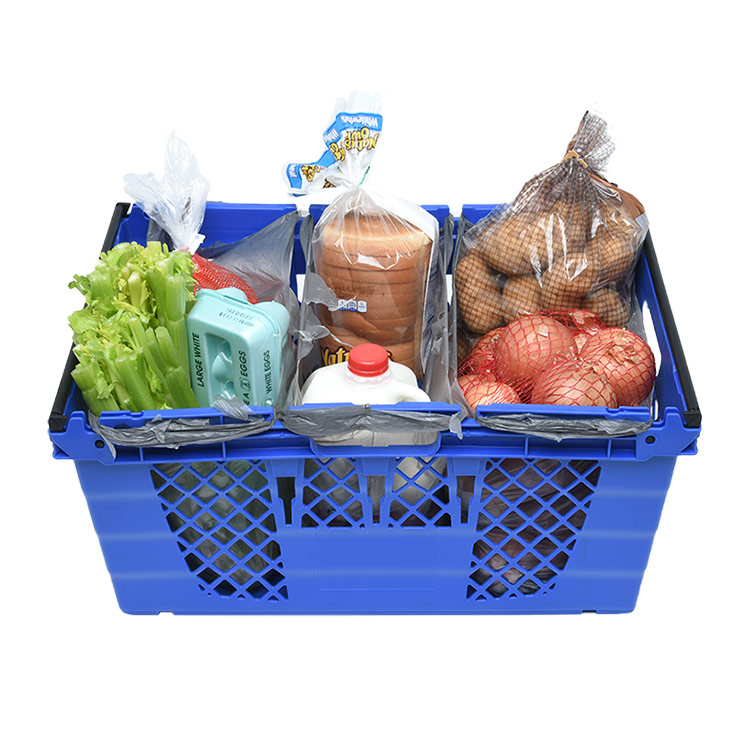 This lightweight, reusable plastic tote, designed to increase efficiency during e-commerce fulfillment, supports your entire e-commerce system from in-store fulfillment through curbside pickup or home delivery. Its durable construction simplifies the picking process and protects groceries, while its nestable design saves valuable space in trucks and back rooms.